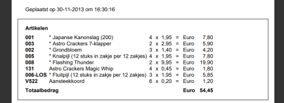 Ja zeker, ik heb alleen de bestelling uiteindelijk geannuleerd vanwege het vuurwerkverbod en ik niet wist of ik het jaar daarop op die datum thuis zou zijn.De special 4 van katan? voor 52 euro? Dat was een koopje dan