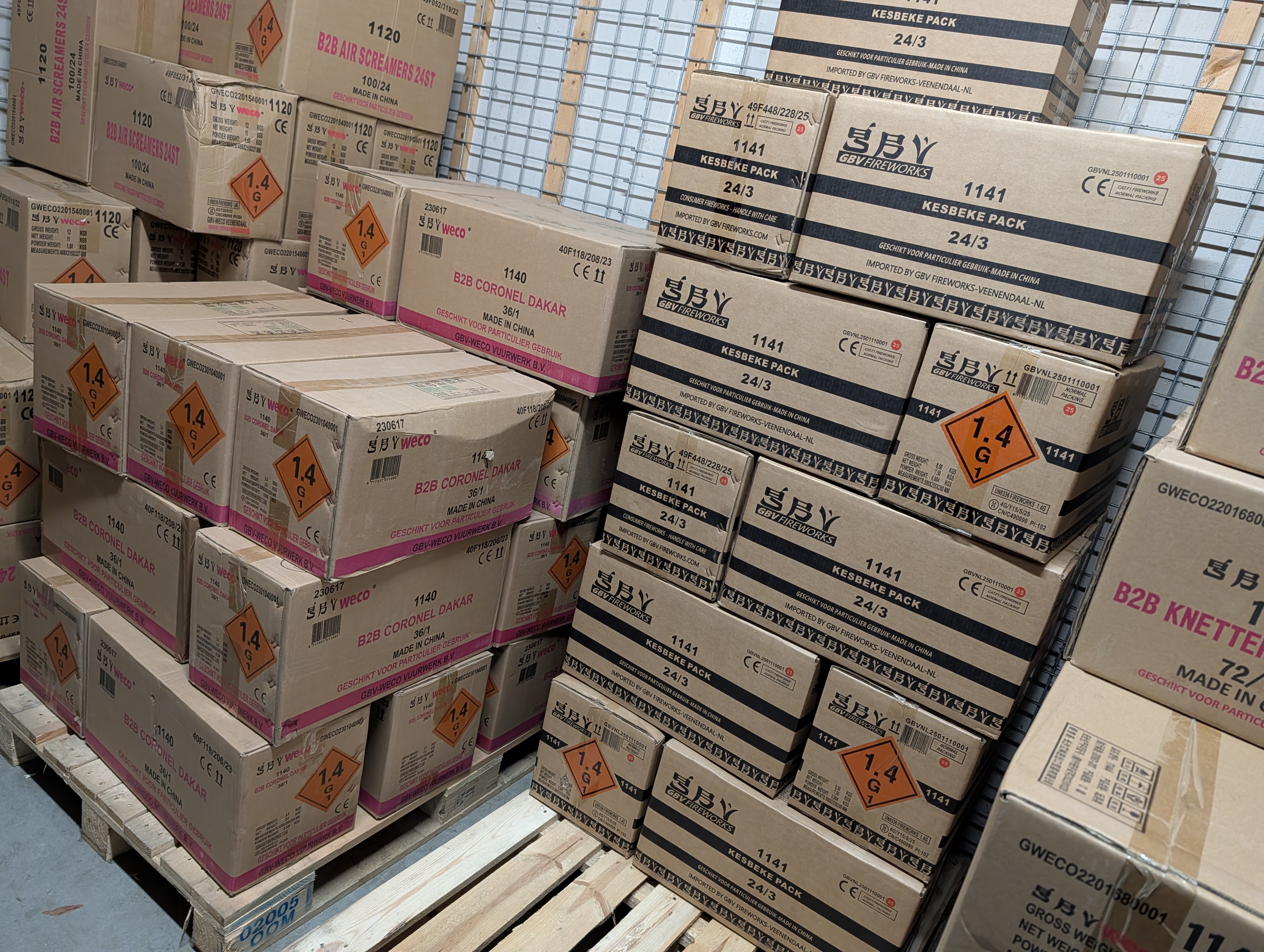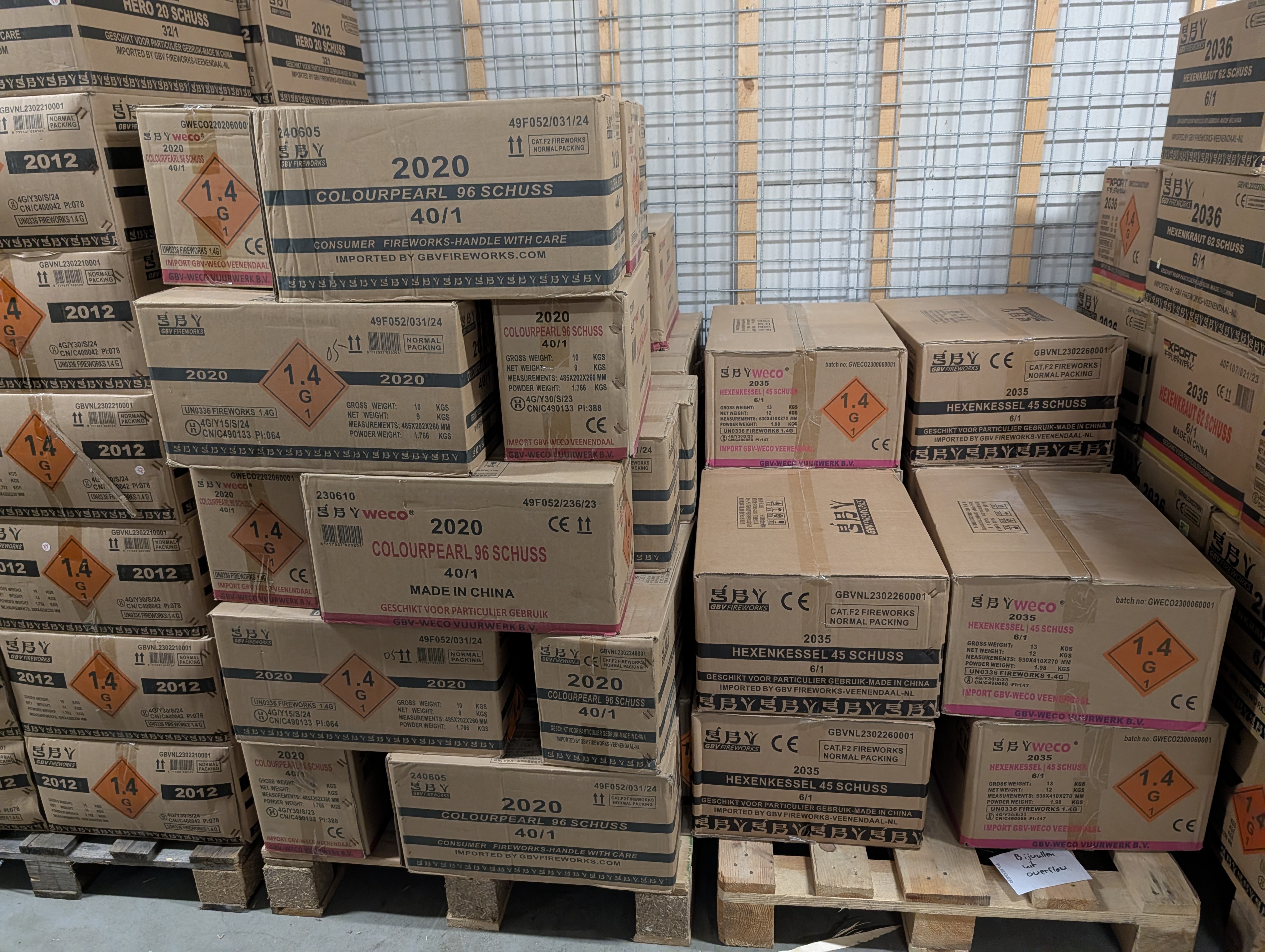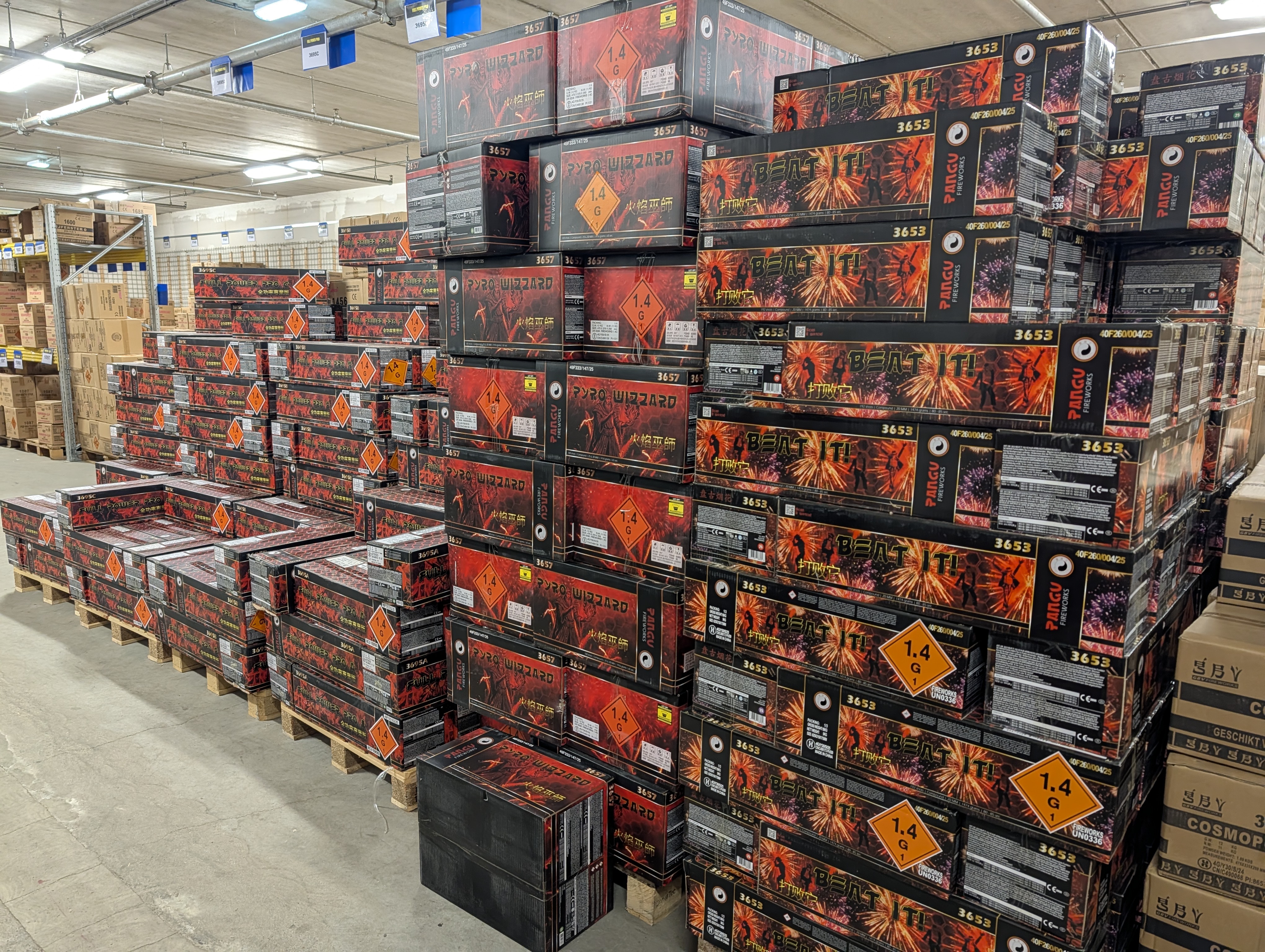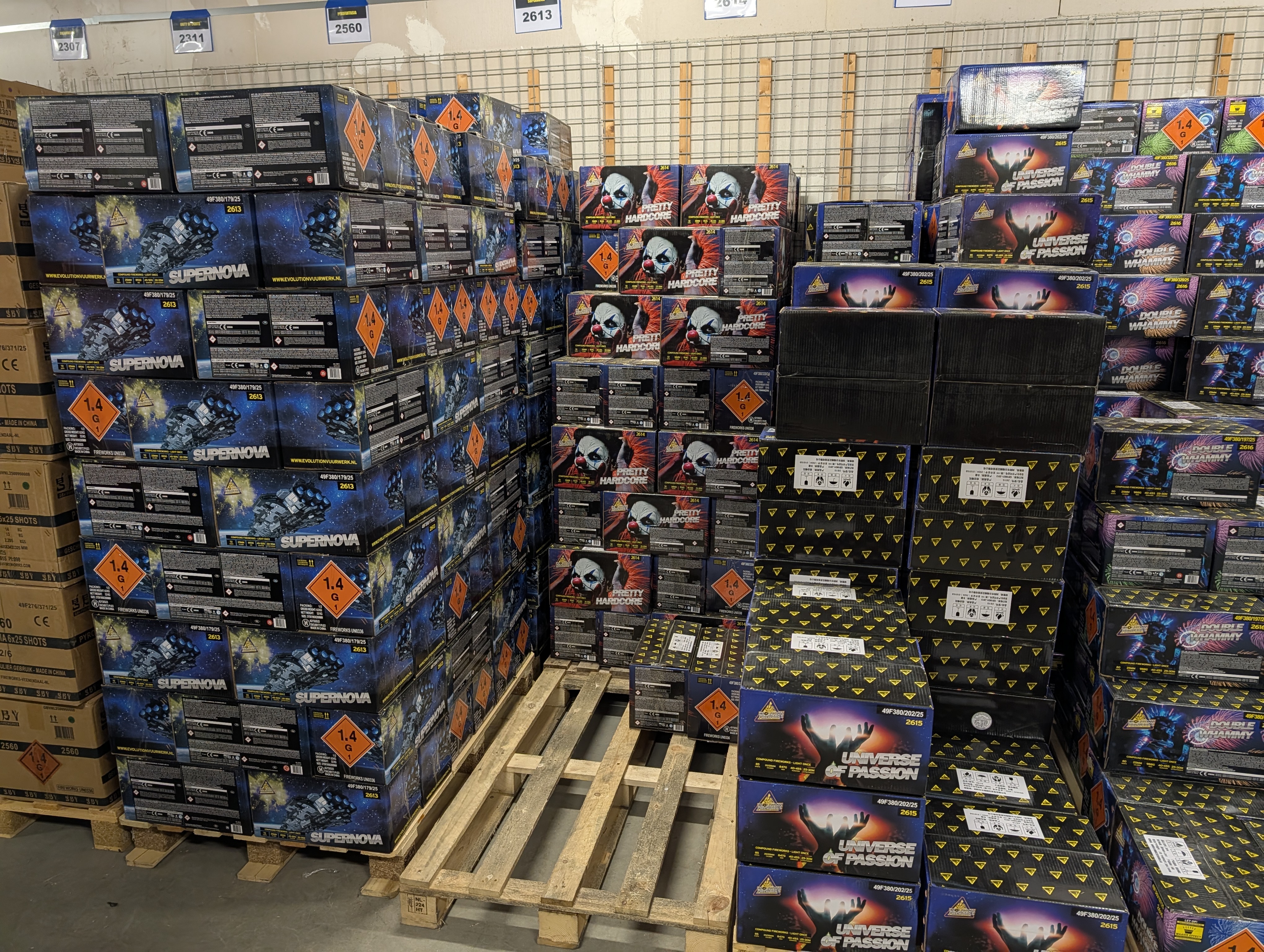 Jasper nam ons mee door de verschillende bunkers om de voorraden te zien, altijd een tof beeld om zoveel vuurwerk bij elkaar te zien.