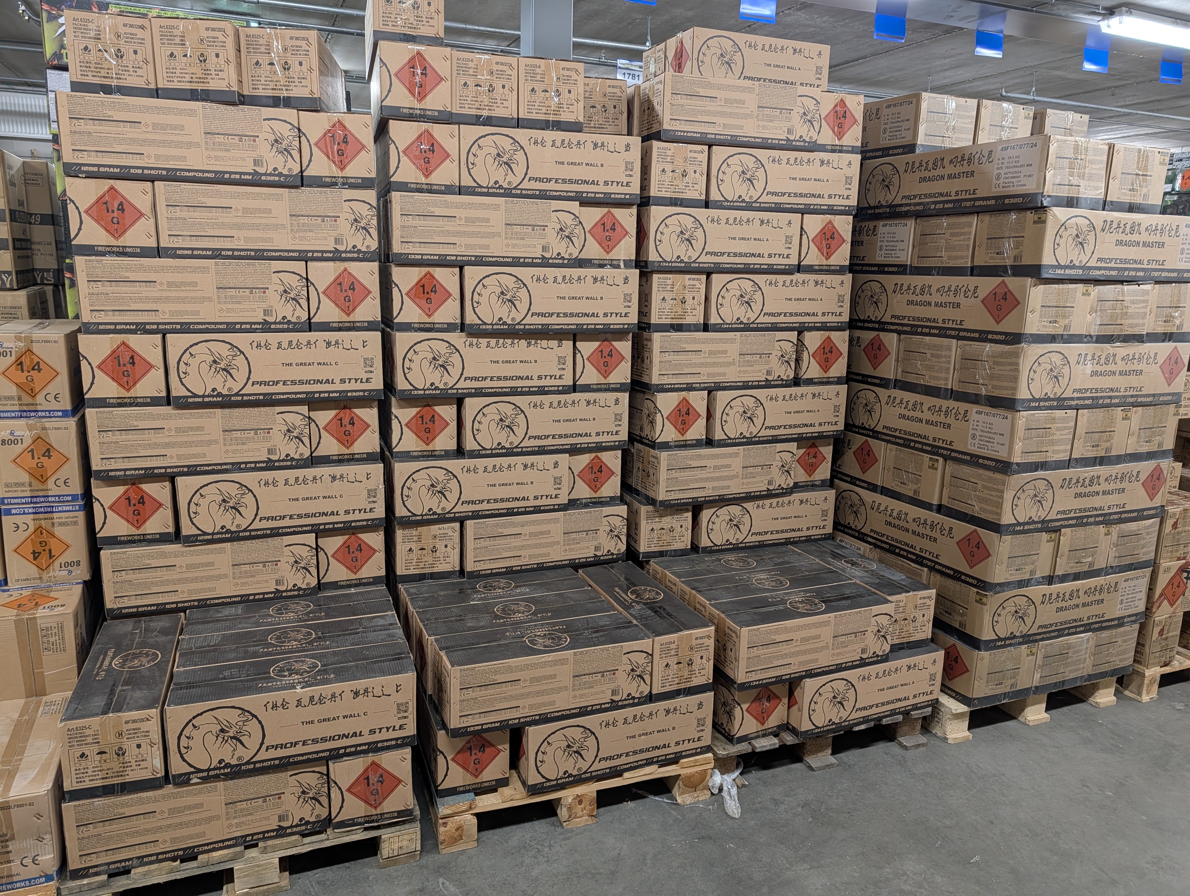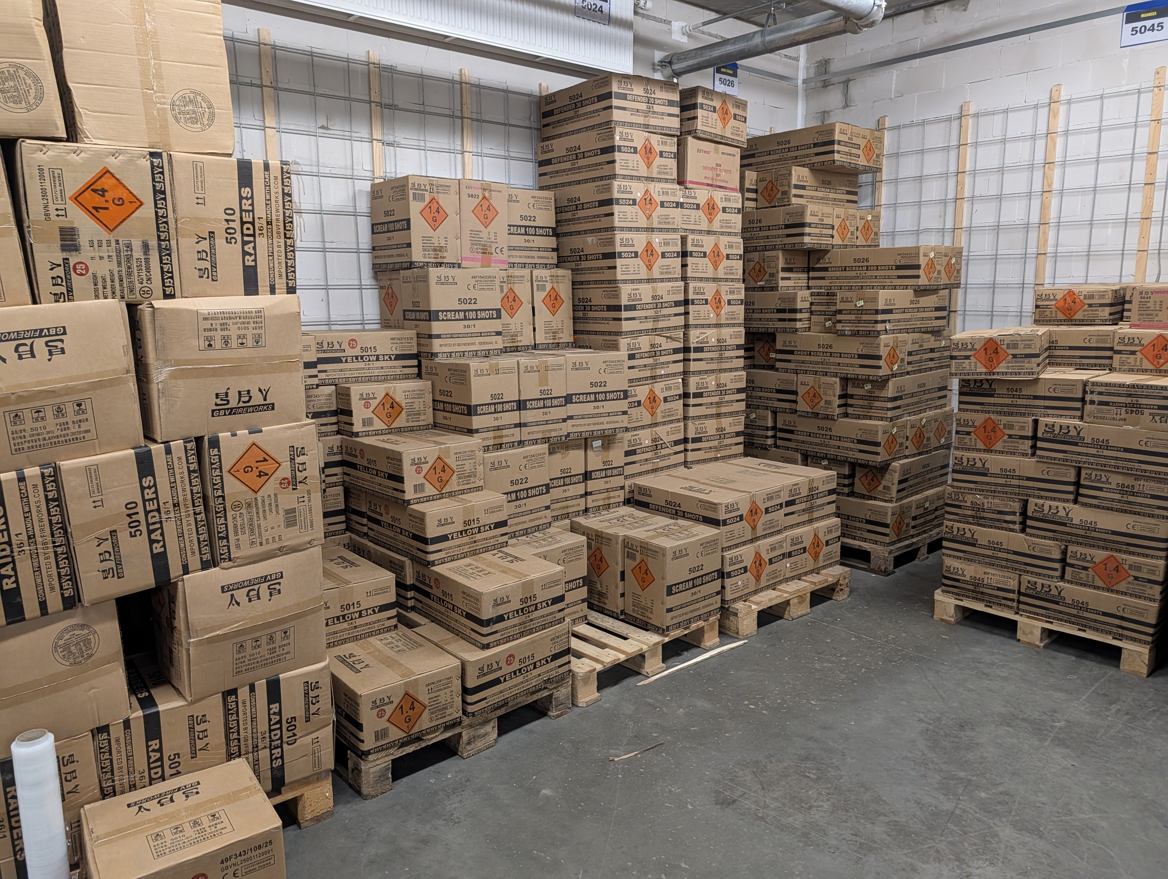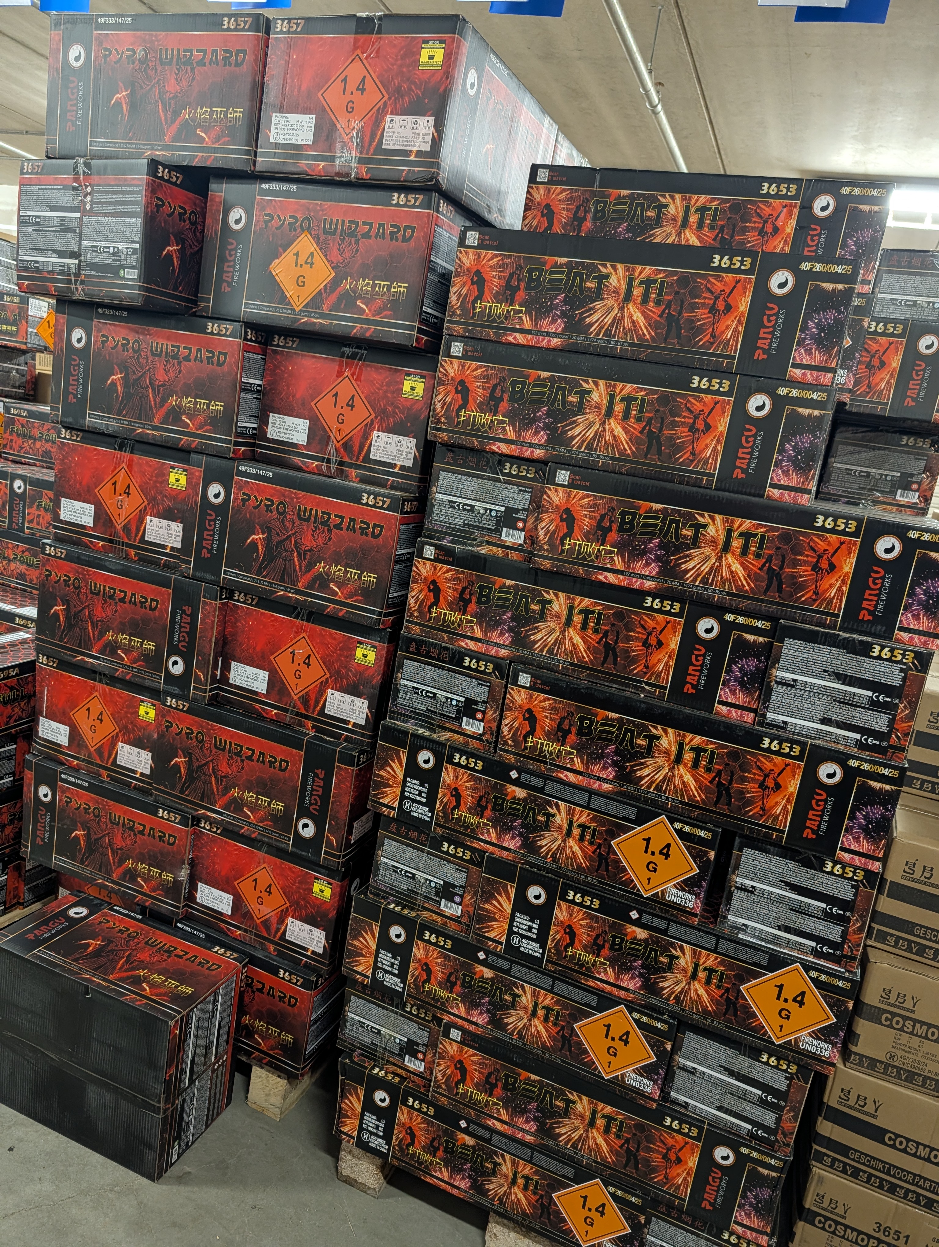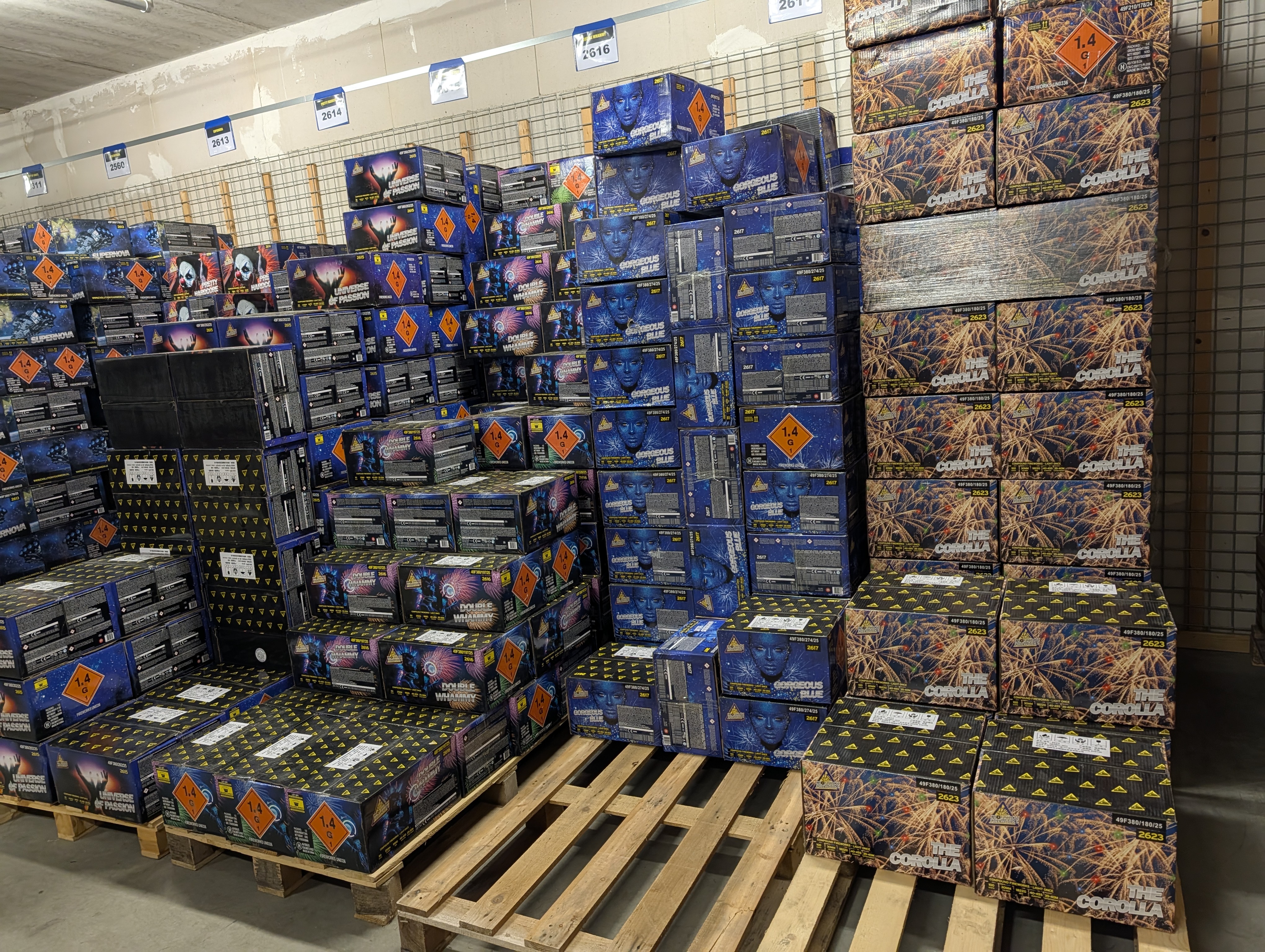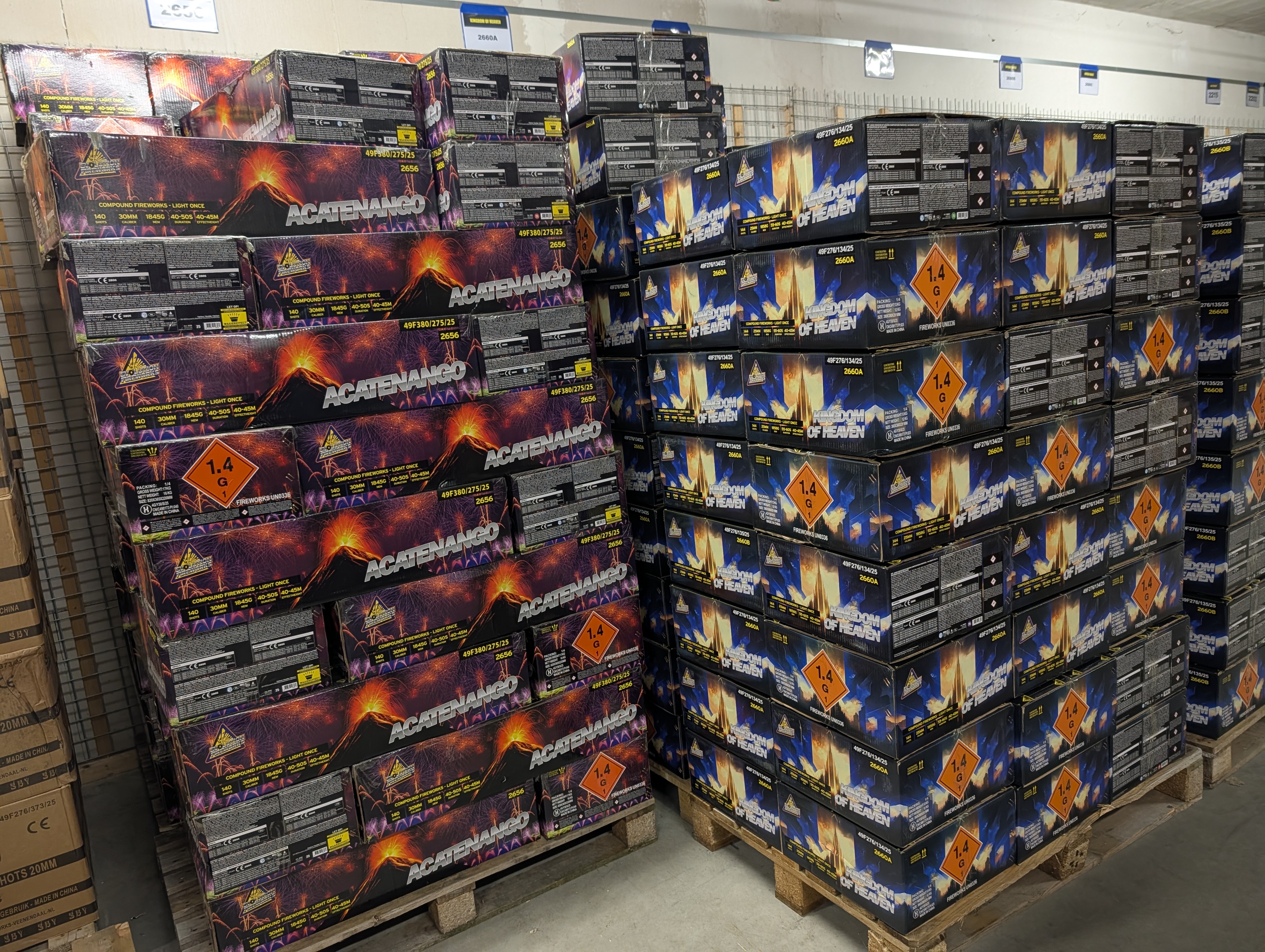 Jasper nam ons mee door de verschillende bunkers om de voorraden te zien, altijd een tof beeld om zoveel vuurwerk bij elkaar te zien.