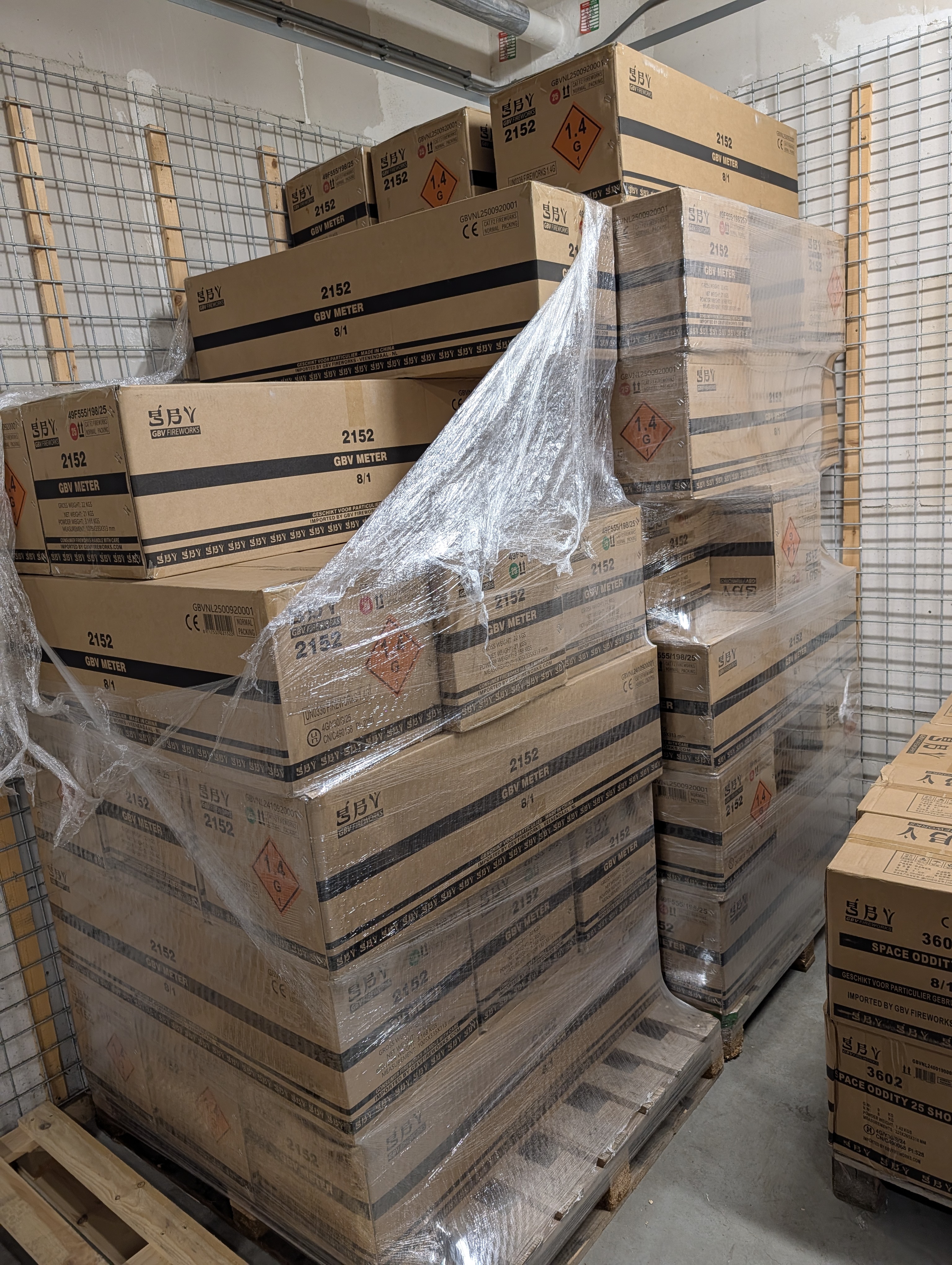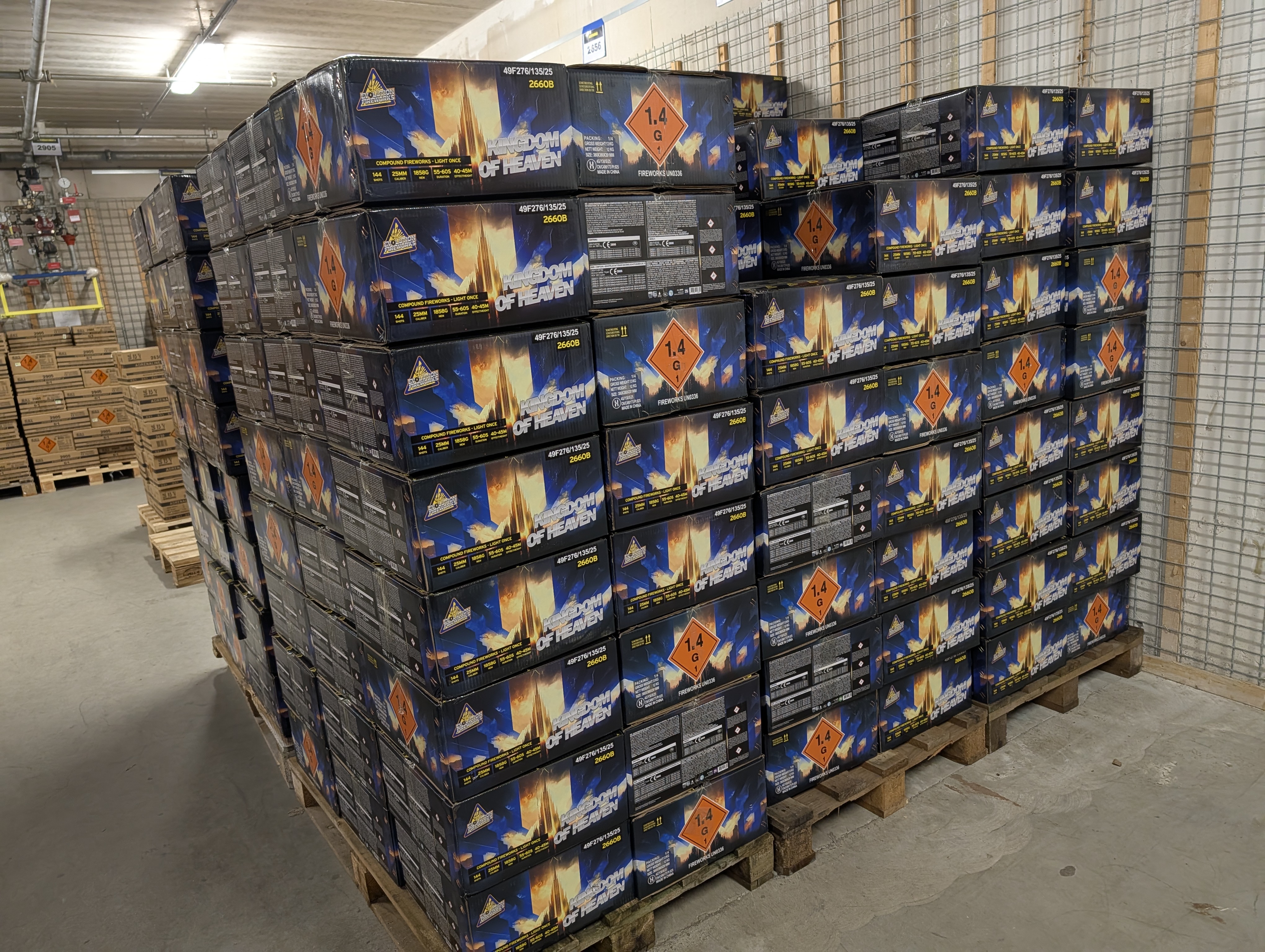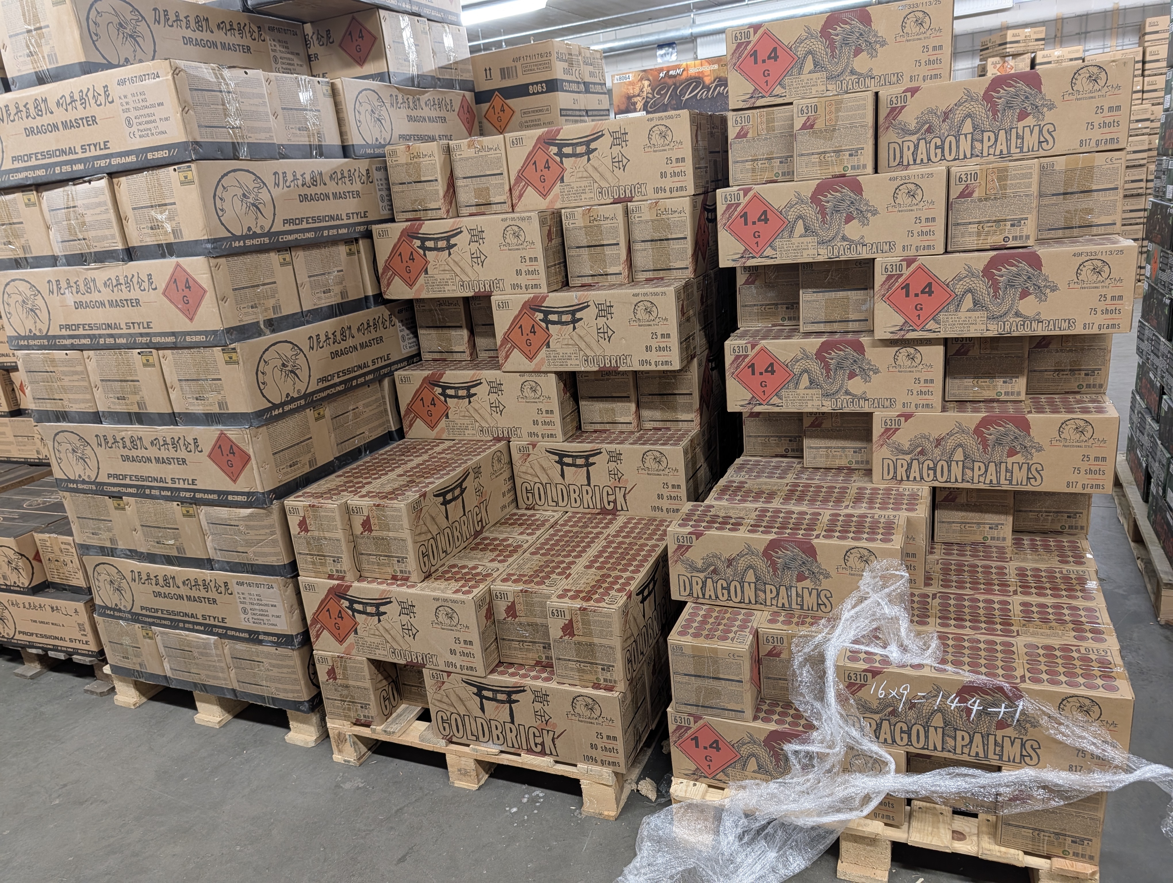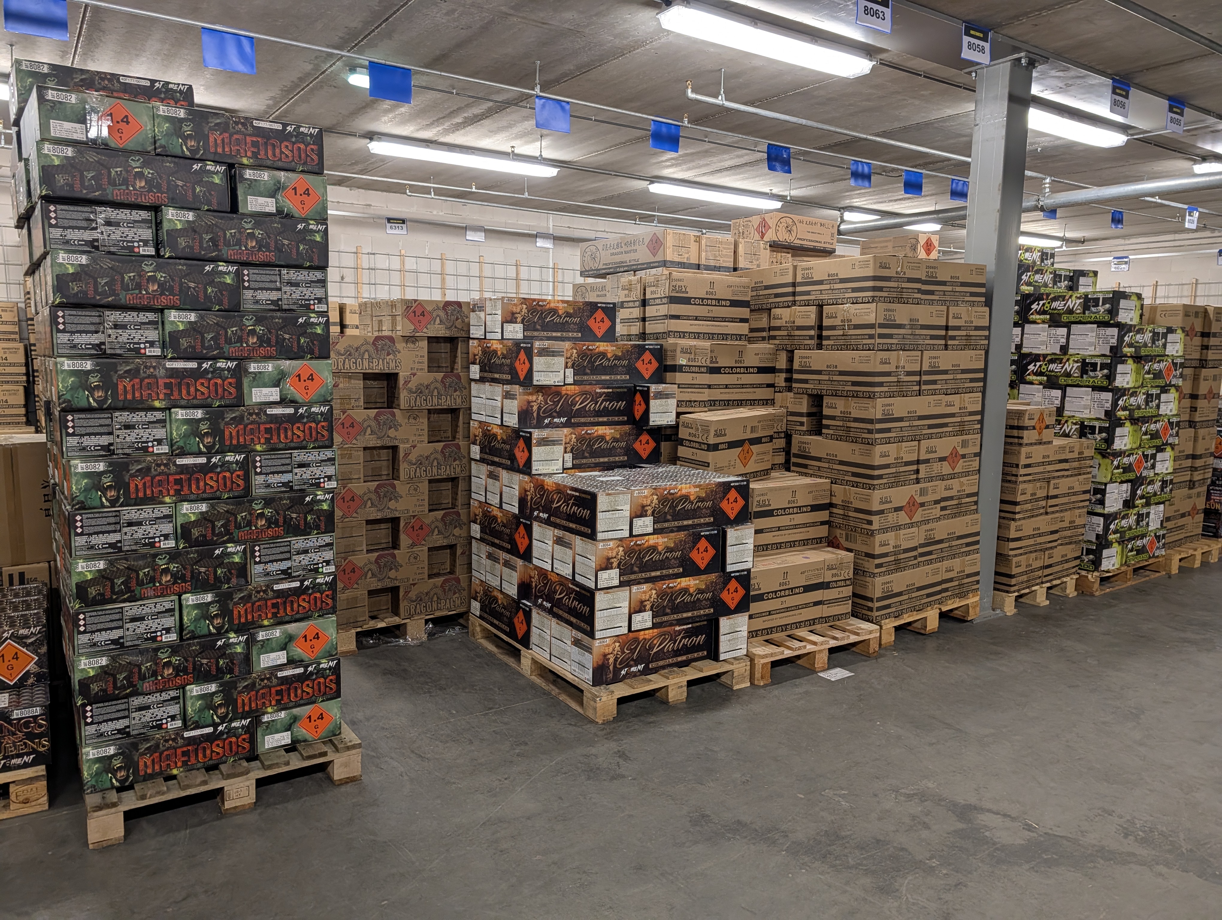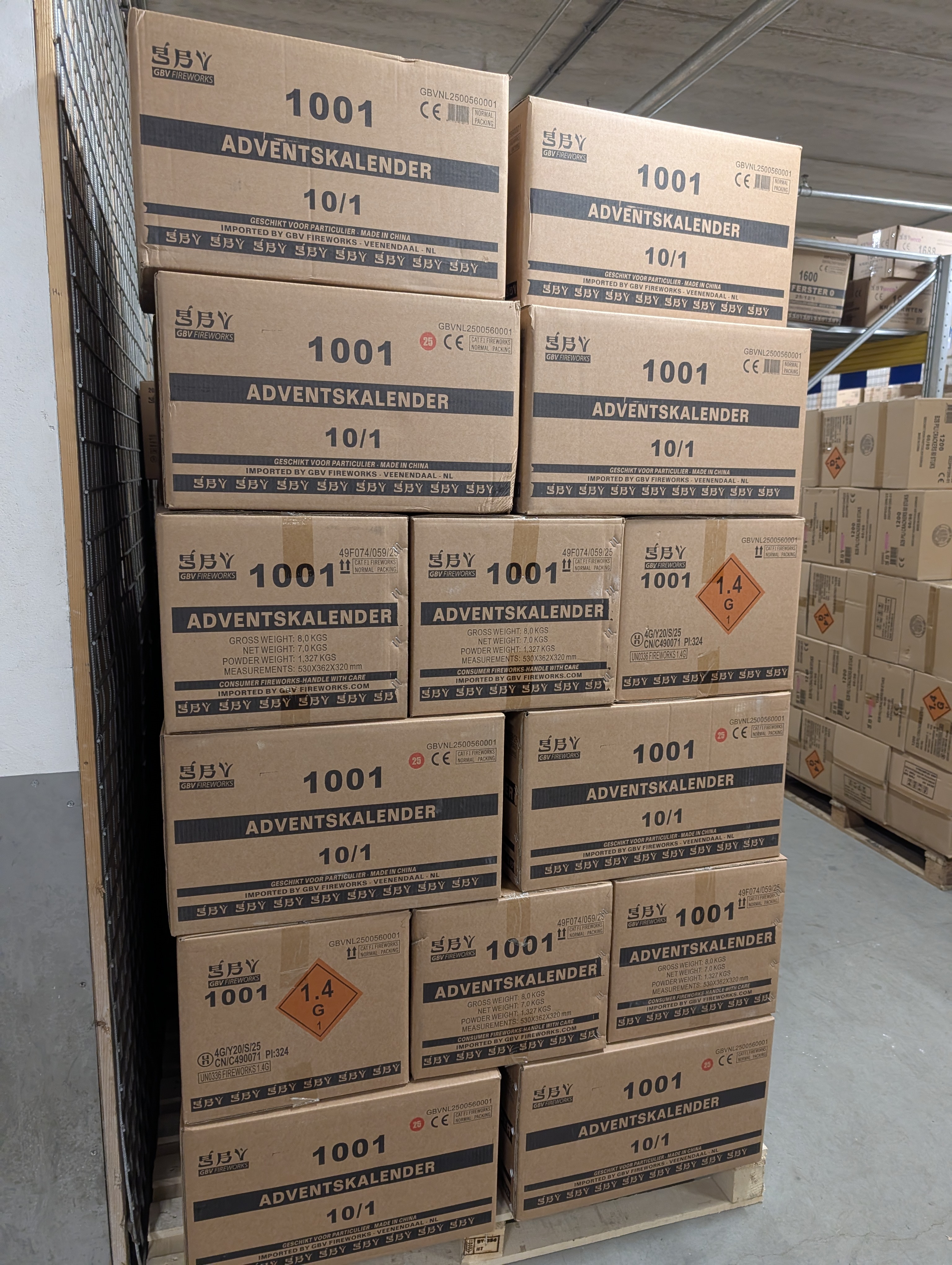 Jasper nam ons mee door de verschillende bunkers om de voorraden te zien, altijd een tof beeld om zoveel vuurwerk bij elkaar te zien.