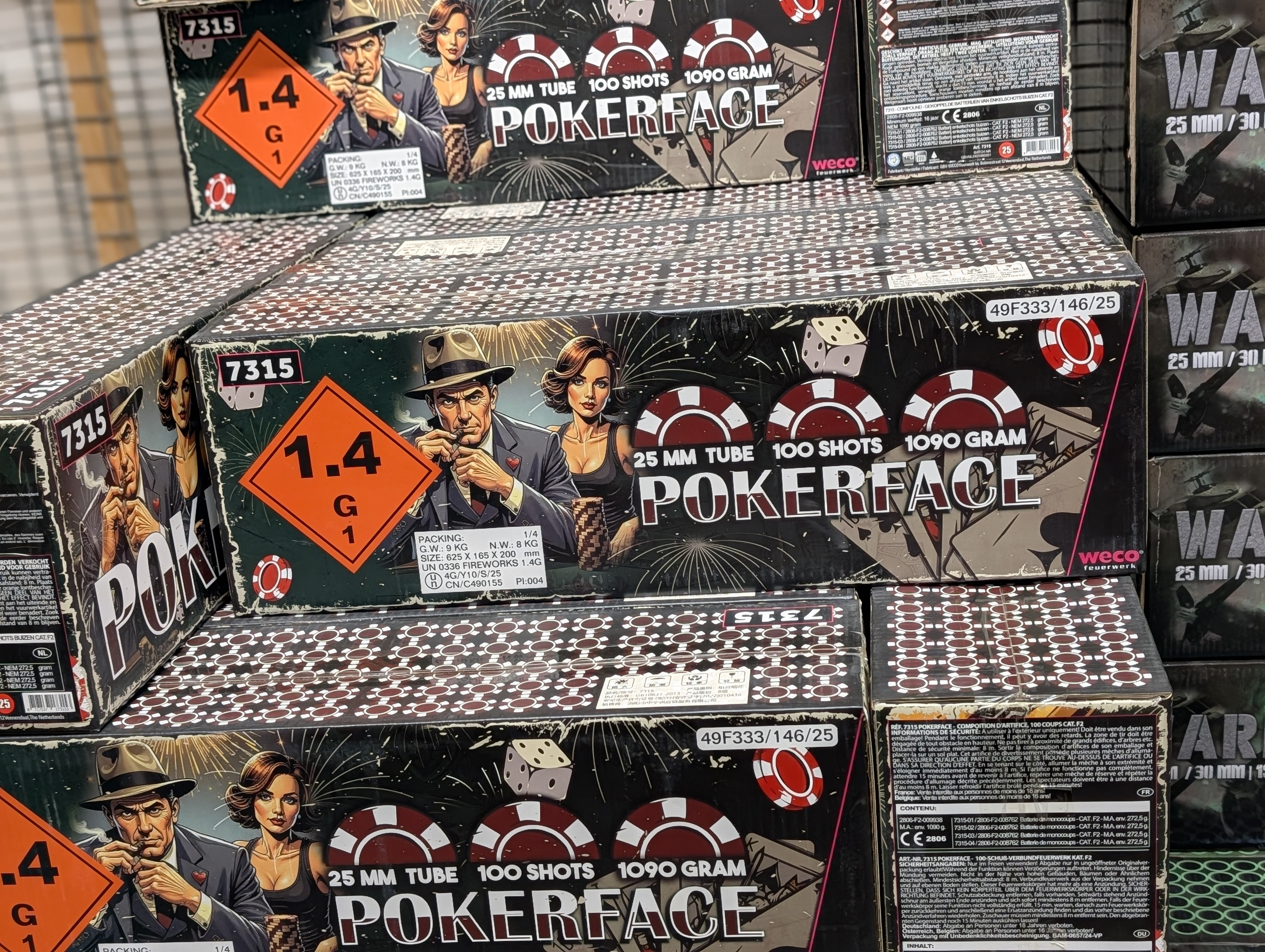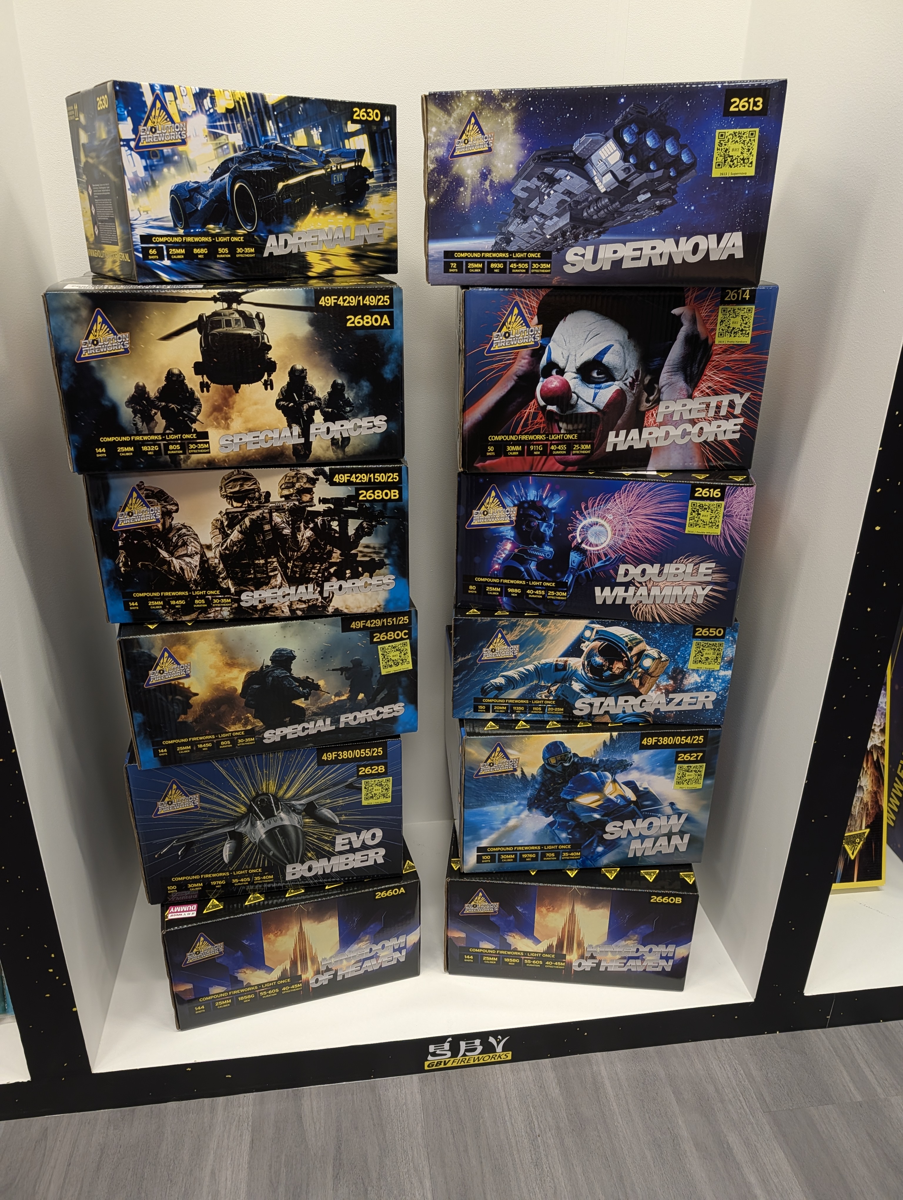 De voorraad voor dit jaar is ruim en de verwachting is dat er extra veel verkocht gaat worden. De eerste signalen qua verkoop zijn goed, er zijn nu al mooie bestellingen geplaatst bij shops en vrijwel alle bestellers hebben 1 en vooral meer dan 1 compound in de bestelling zitten. Het lijkt er ook op dat veel Nederlanders toch nog even een keer extra genieten van de jaarwisseling met consumentenvuurwerk, ze zien weer meer nieuwe bestellers, iets dat na 2 verbodsjaren ook het geval was.